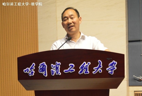 美国田纳西大学核工程系主任 J.Wesley Hines教授上台致辞。他对同学们选择核专业,并致力于核电事业的发展表示了欢迎,并结合世界能源形势说明了核电发展的重要意义。他列举了核电发展面临的三大挑战,即核能安全、核废料的后期处理及核辐射防护,并希望同学们能够牢记这些挑战,在以后的学习中能够奋发图强,不懈努力,为解决这些问题作出自己的贡献。