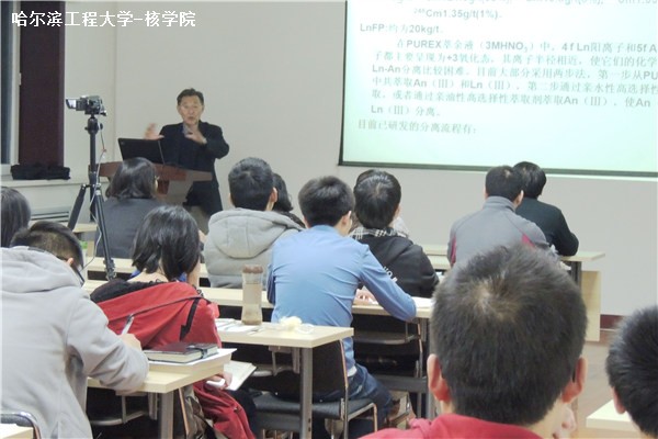 | 4月7日至8日,中核集团科技委顾问严叔衡研究员受邀来院进行学术讲座,陪同严叔衡研究员一起到访的还有中国原子能科学研究院放射化学所38室丁有钱主任。7日晚,严叔衡研究员与2011及2012级核燃料循环与材料专业的同学进行了座谈,就核能及核燃料循环的重要性、毕业后的工作去向、大学期间的学习目的及学习方法等问题进行了讨论。同学们就考研、就业等问题与严叔衡研究员进行了热烈讨论。