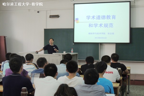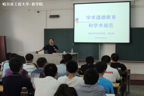 下午2点开始,张志俭经理为同学们做了学术道德教育和学术规范讲座。讲座分为四部分:核科学与技术的人才需求,包括需要什么样的人、怎样成为这样的人,核公司的作用、核公司的措施及科学与工程伦理守则等。在此过程中,张经理介绍了公司的国际合作情况,为员工提供的发展机会,希望员工利用好公司的有利资源,在学习过程中严于律己,积极上进,做能力与素质全面发展的栋梁之材。