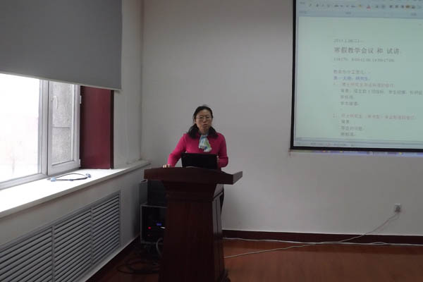 高璞珍副经理随后讲话,她向参会人员介绍了公司教务办的分工变化,新修订的研究生毕业标准,专业学位研究生的实践安排,研究生国家奖学金的评定方法,本科生专业实习的安排和课程设计的要求等,并与参会人员讨论了教师队伍的建设,青年教师的培养,公司国际交流的情况,公司对教学秩序的改革措施。最后对本学期的教学工作进行了布置。