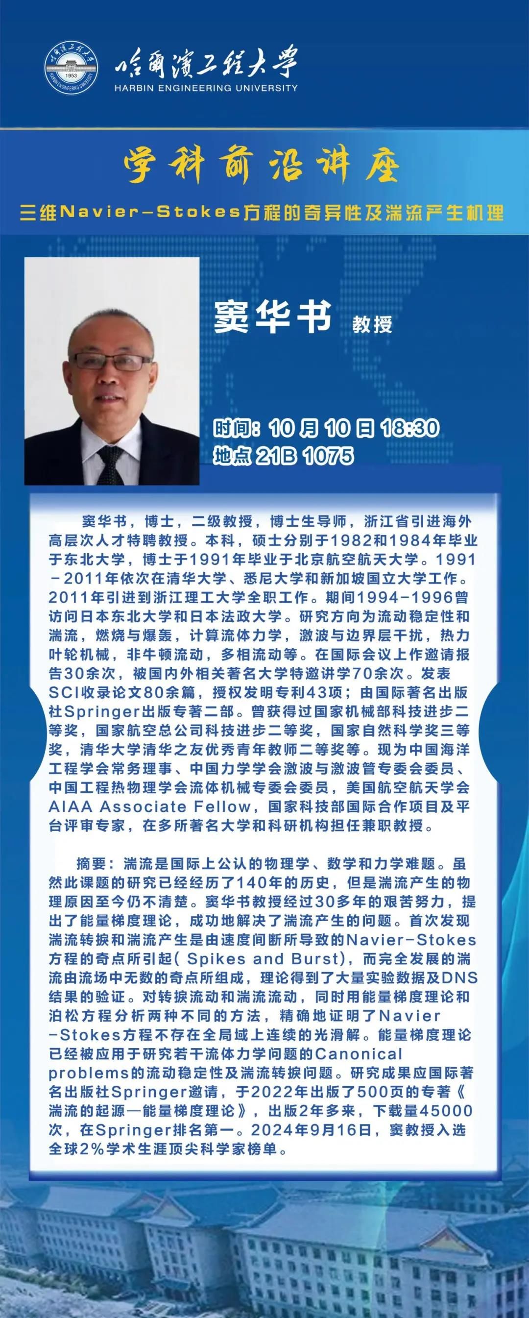 【讲座预告】三维Navier-Stokes方程的奇异性及湍流产生机理