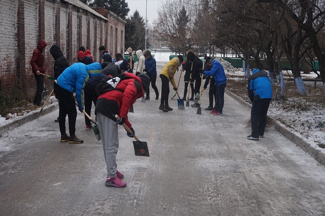 11月15日下午13时40分,核公司2016级本科生到指定区域清扫冰雪,核公司2016级辅导员李灵东、院员工会生活权益部部长葛文强参加清扫冰雪工作。2016级各班负责清扫冰雪工作的生活委员和实践委员积极协调好工具领取调配...