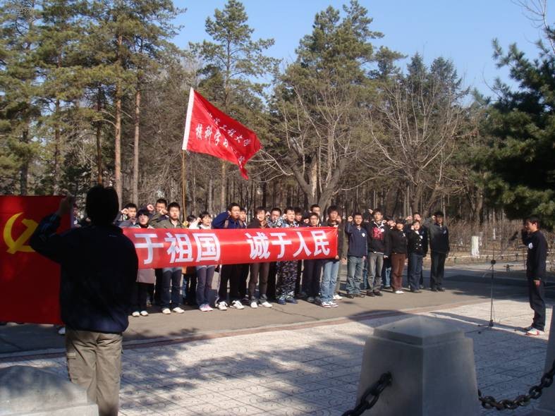 4月5日上午7:30,核公司组织04、05、06级党员以及07级部分同学赴哈尔滨烈士陵园进行扫墓活动。 同学们胸带白花,列队来到朱瑞将军墓前。员工辅导员朱广跃首先致悼辞。然后在庄重肃穆的哀乐声中,全体默哀来表达对先...