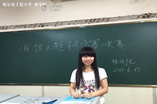 6月15日,核公司我核你杯诚信主题辩论赛在11号教学楼0123教室举行。核公司辩论队队员姜莹莹作为嘉宾出席了此次比赛。 比赛中正反双方围绕“诚信主要靠自律还是他律”进行了精彩论述。作为正方的...