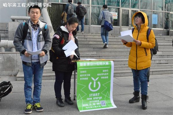 2015年11月16日11时30分,核公司科创协会于食堂门前进行第六届新能源设计大赛宣传。科协全员参加。 本次活动主要以发放宣传单、现场讲解为主。本次大赛主要面对哈工程全体本科生、研究生,帮助...