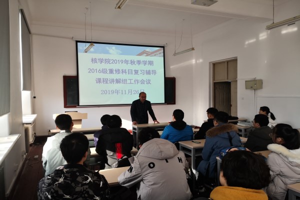 为做好2016级重修同学复习备考工作,提高复习的针对性和通过率,2019年11月26日上午10:00,核公司2019年秋季学期2016级重修科目复习辅导课程讲解组工作会议在31号楼238室行,辅导员李灵东主持会议,2016级重修科目复...